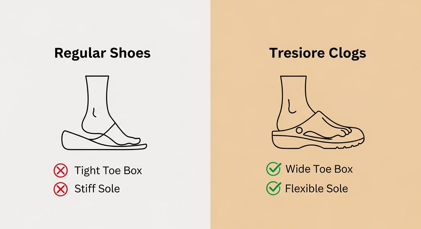 Bij Tresiore zijn onze Zomer- & Winter Comfortklompen ontworpen met orthopedische zolen die elke stap dempen en natuurlijke beweging stimuleren.