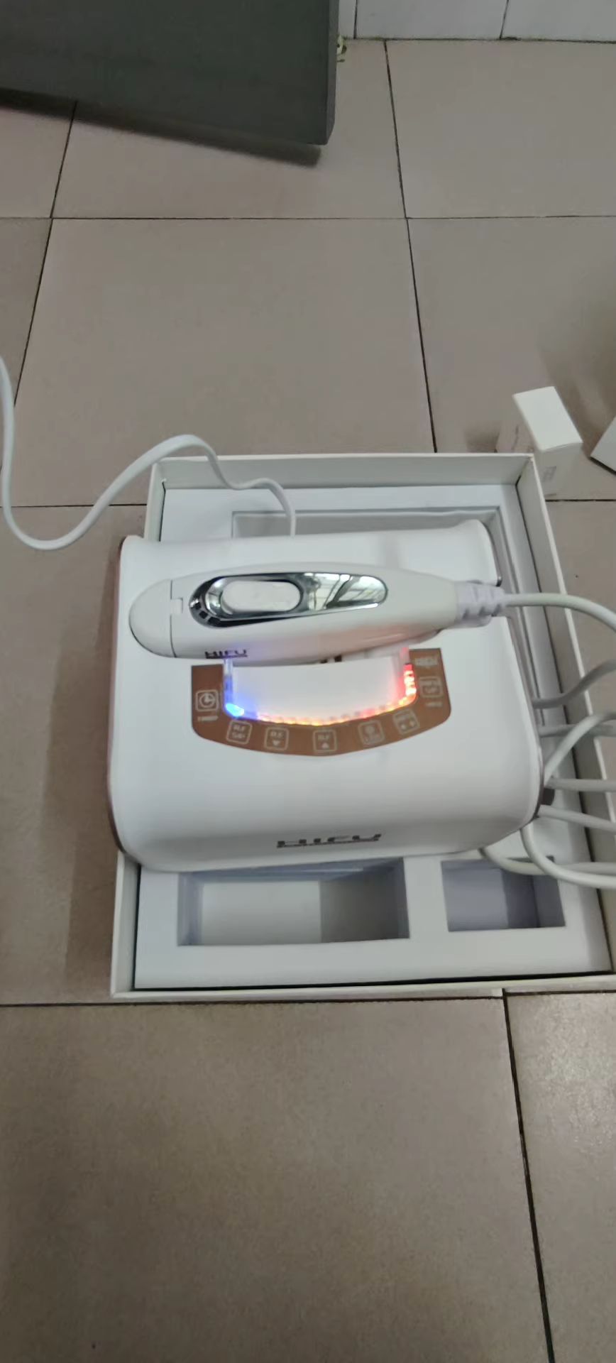 Het apparaat geeft een professioneel gevoel en ik merk al verschil in de fijne lijntjes rond mijn ogen.